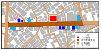 | ・小規模宅地等の権利を立体換地床に集約して権利変換し、民間事業者の所有する低未利用地を集約して大街区を図る | ・小規模宅地等の権利を立体換地床へ、民間事業者の換地は大街区化し都市機能を引き込み有効活用する | ・大街区化により高度利用と都市機能導入を図る |